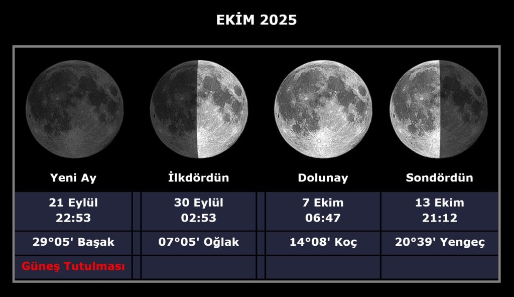 Ekim ayı Ay Fazları aşağıdadır.
