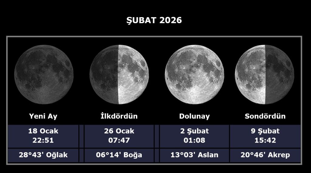 Şubat ayı Ay Fazları aşağıdadır.